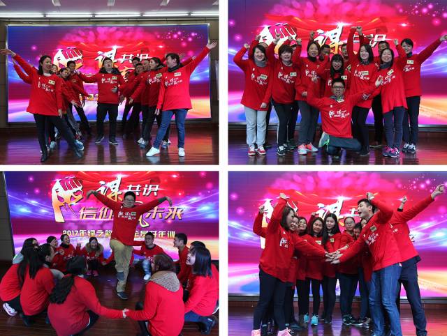 “金鸡队”“共赢队”“超越队”“学霸队”“信仰队”“老虎队”“战狼队”“谋赢队”等共计17组,每个队选举产生一个队长和一个“吉祥物”撒娇卖萌,“金鸡报晓,一鸣惊人”的口号,彰显自信,锋芒毕露;“有勇有谋,赢定2017”的口号铿锵有力,霸气十足;“强信仰,赢未来”的口号,彰显决心,激情澎湃……